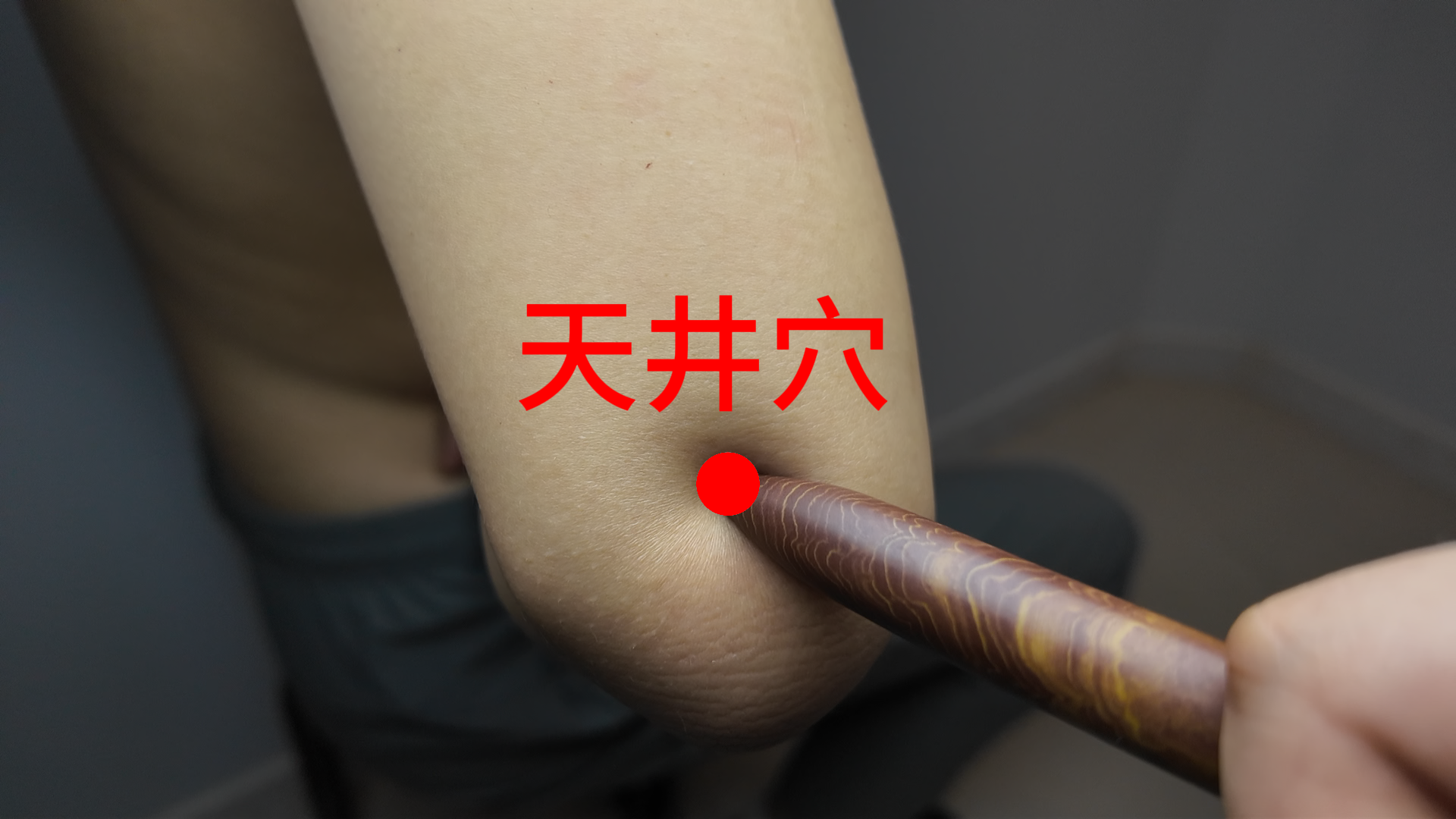 坐位屈肘。从肘尖(参见“肘尖”)向上量1寸(拇指上1横指),即为本穴。