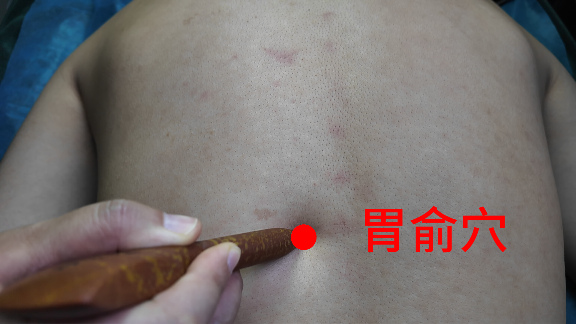 第1步:正坐或俯卧位;第2步:两侧骨盆最高点(髂嵴最高点)连线与后正中线的交点处,为第4腰椎棘突;第3步:从第4腰椎棘突垂直往上推4个椎体,即是第12胸椎棘突;第4步:在第12胸椎棘突下有一凹陷,此凹陷旁开2横指(食指、中指并拢,以中指近端指间关节横纹水平的二指宽度为1.5寸),即为本穴。
