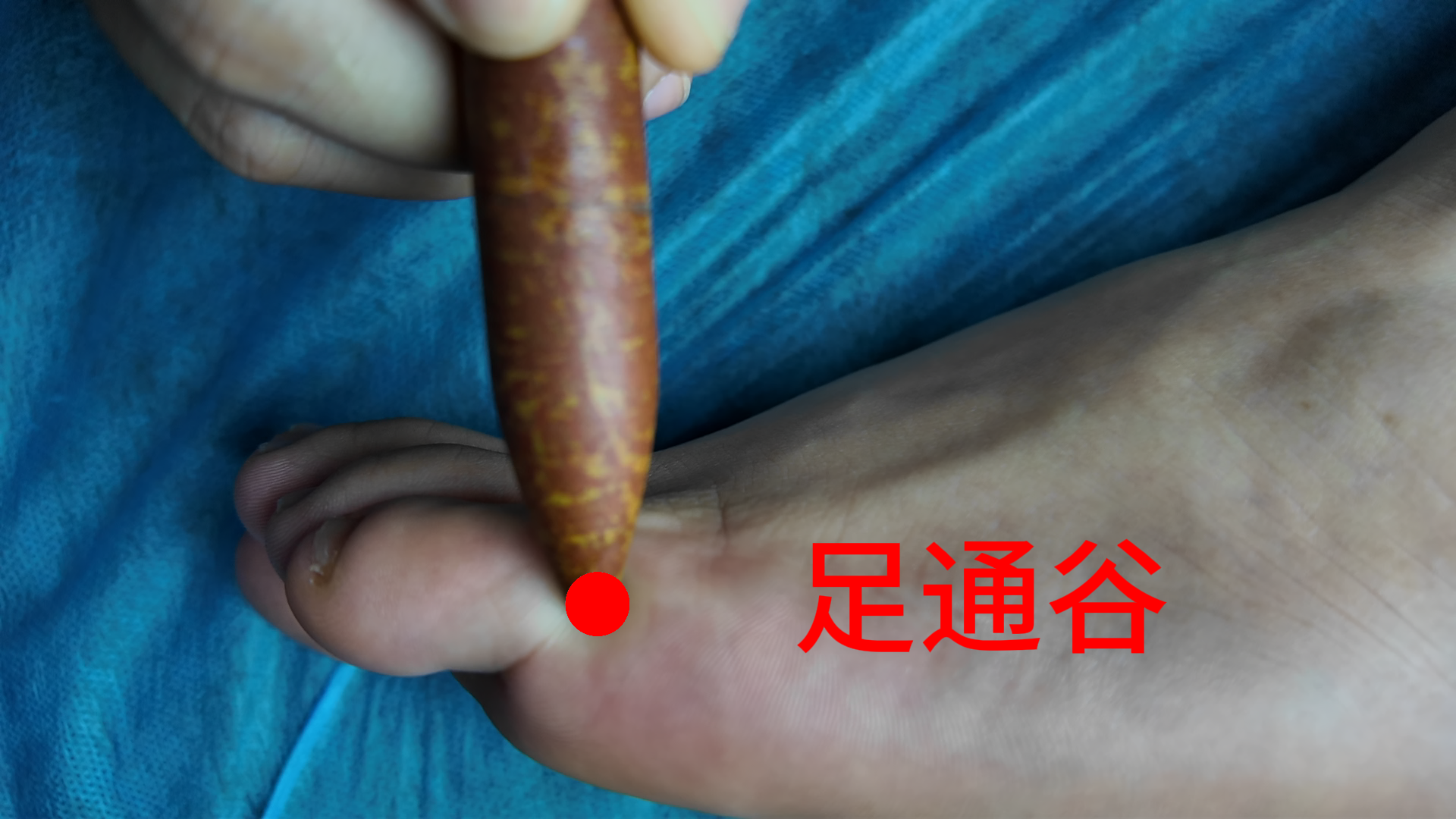 在足外侧,足小趾本节(第5跖趾关节)的前方,赤白肉际处。