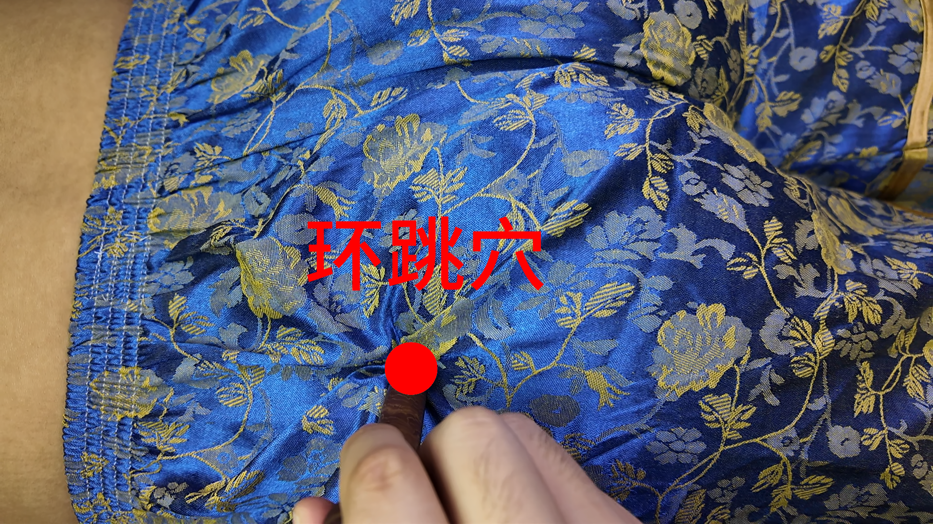 第1步:侧卧屈股;第2步:以拇指关节横纹按在股骨大转子头上;第3步:拇指指向脊柱,拇指尖所指的凹陷处,即为本穴。