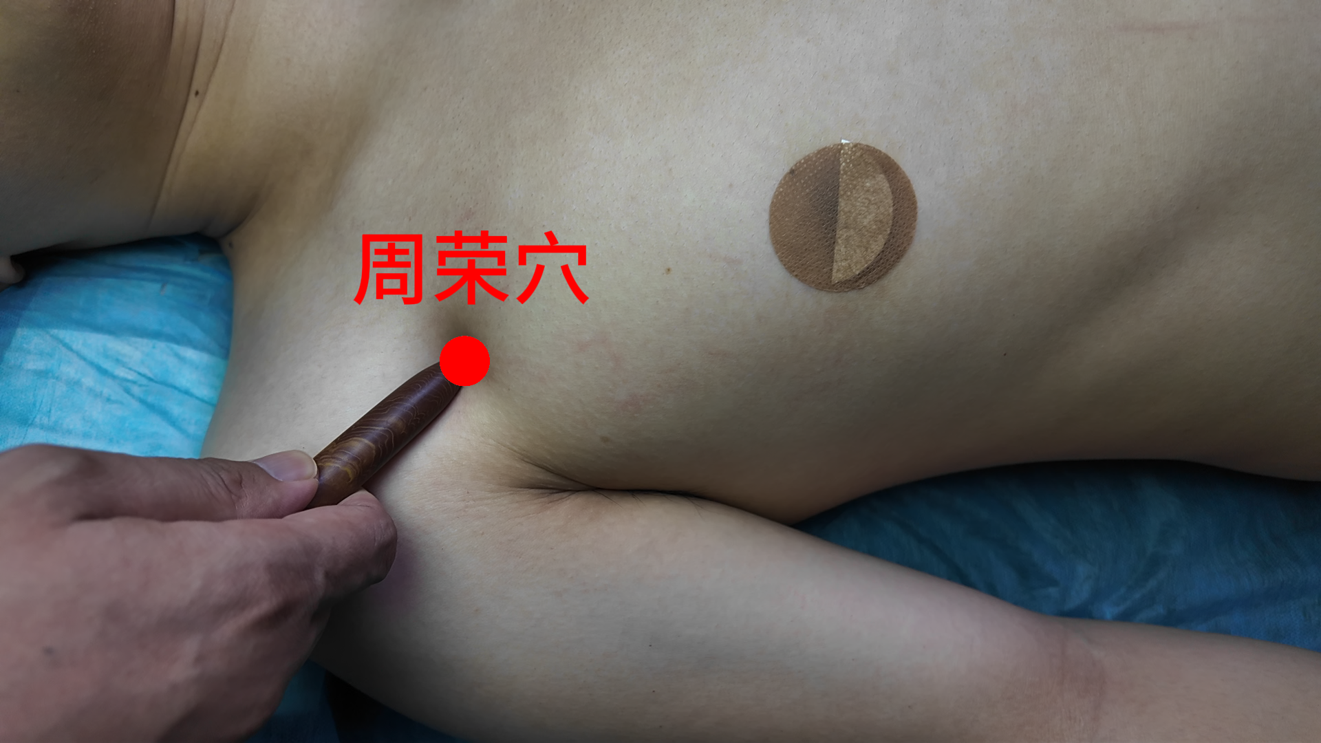 仰卧位。从乳头旁开量2横指(拇指),再向上2个肋间隙(即第2肋间隙),按压有酸胀感处,即为本穴。