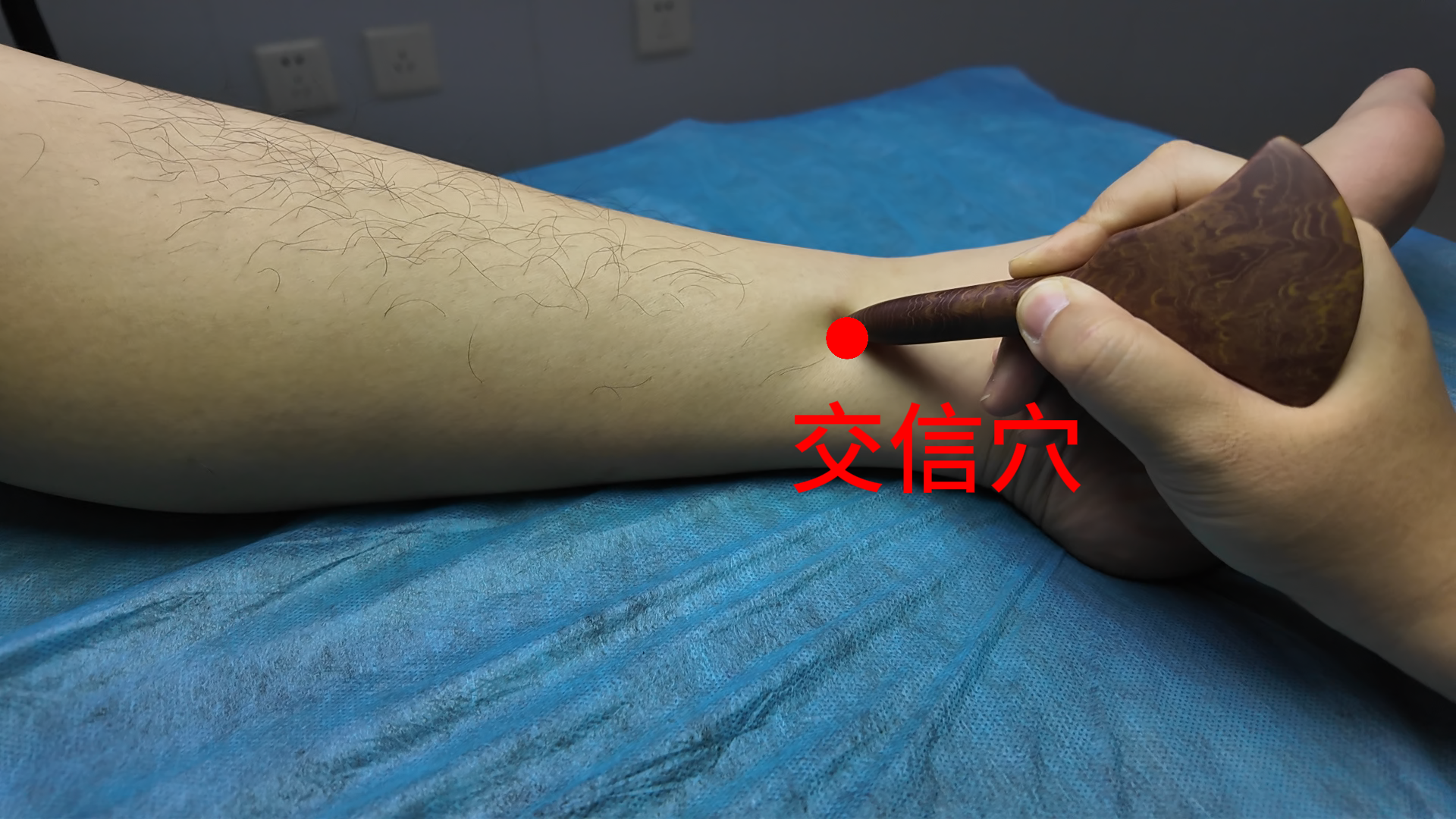 在小腿内侧,当太溪直上2寸,复溜前0.5寸,胫骨内侧缘的后方。