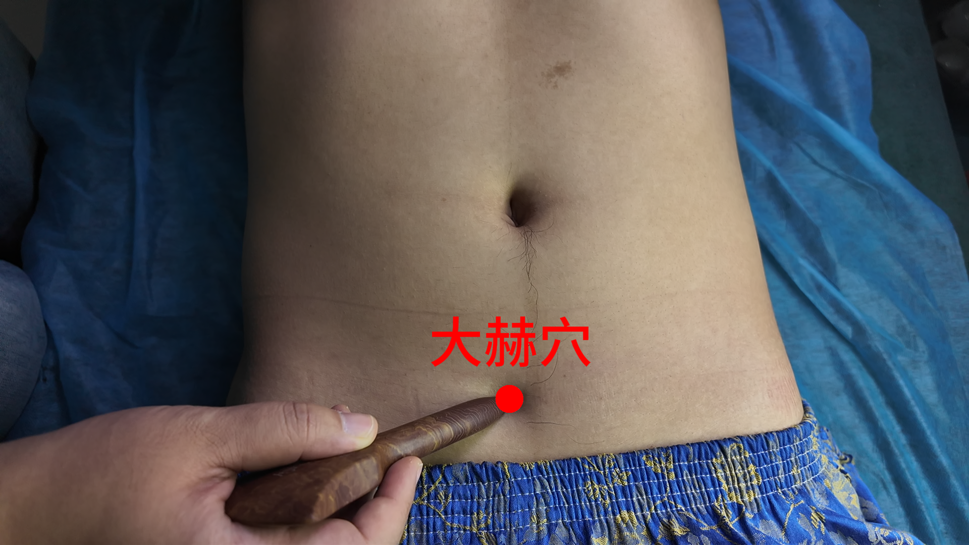 仰卧位。由横骨(参见“横骨”)直上量1横指,按压有酸胀感处,即为本穴。