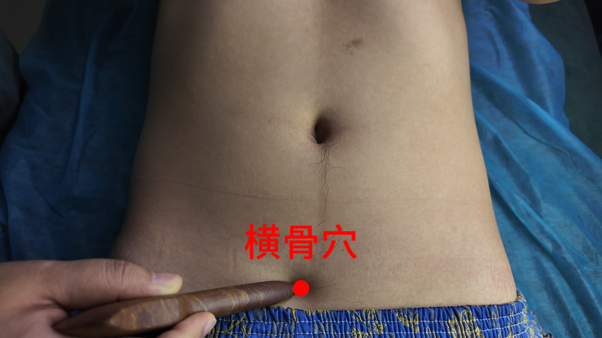 第1步:仰卧位;第2步:沿腹部前正中线向下触摸,可触及一骨头,即为耻骨联合;第3步:从耻骨联合上缘与前正中线交点处旁开量半横指(大拇指指间关节部位的横径为1寸)处,即为本穴。