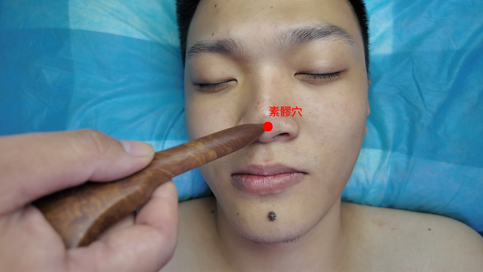 正坐或仰卧。在面部鼻尖的正中央(最高点处),即为本穴。