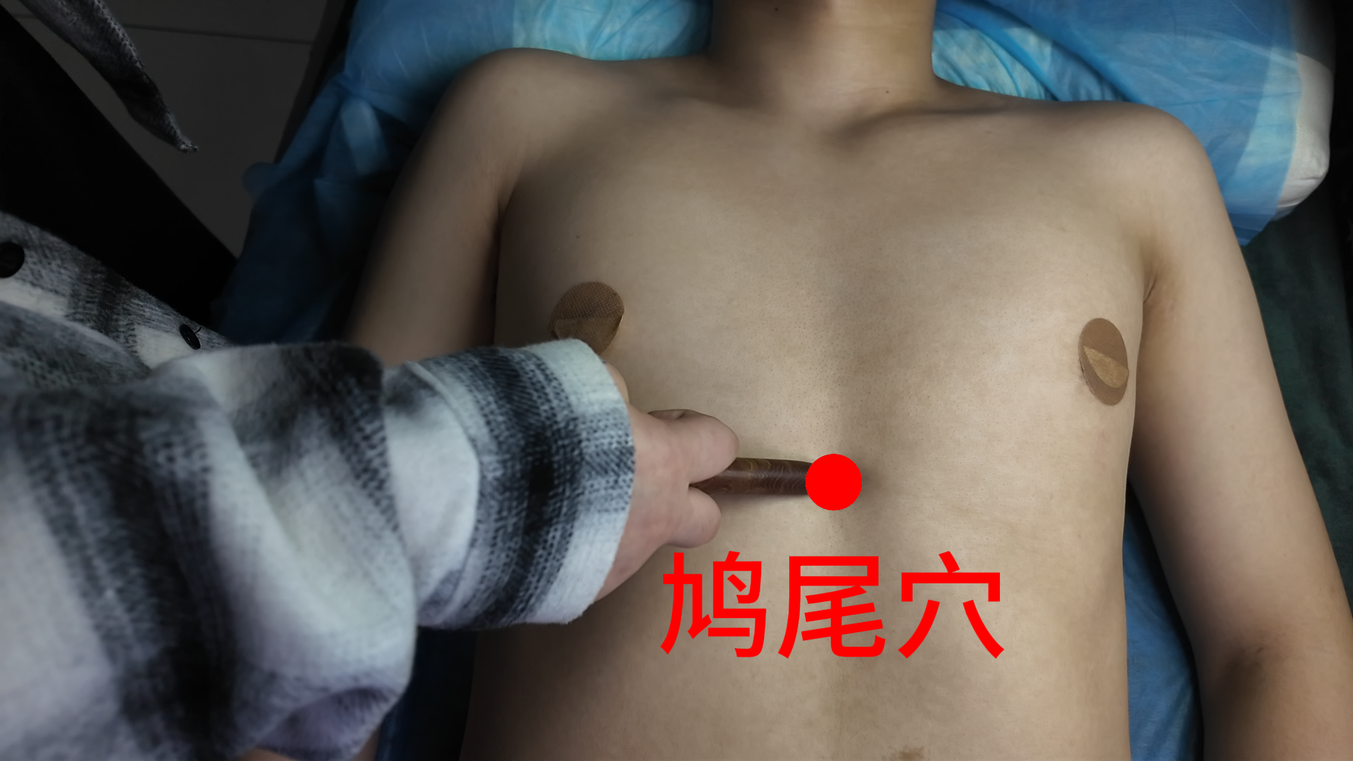 在上腹部,前正中线上,当胸剑结合部下1寸。