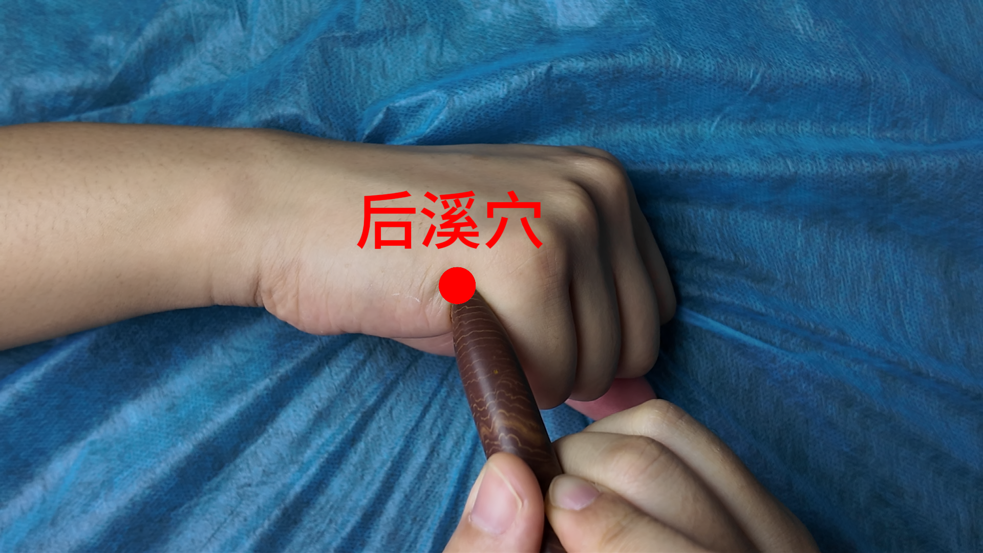 第1步:仰掌握拳;第2步:在手掌内(尺)侧,小指掌指关节后,有一皮肤皱襞突起,其尖端(远侧掌横纹头赤白肉际)处,即为本穴。
